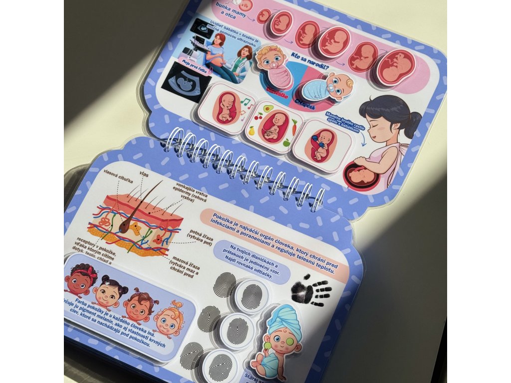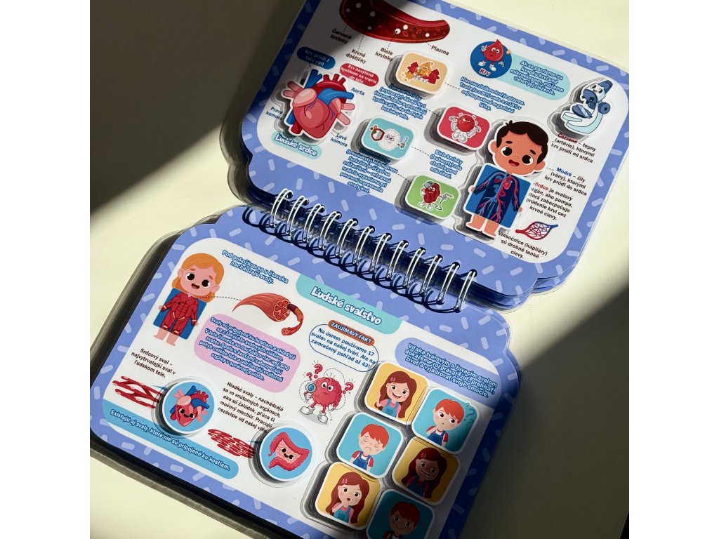 Objavujte ľudské telo hravou formou! Táto edukačná kniha na suchý zips je určená pre deti od 3 rokov a ponúka skvelý spôsob, ako sa učiť cez hru.